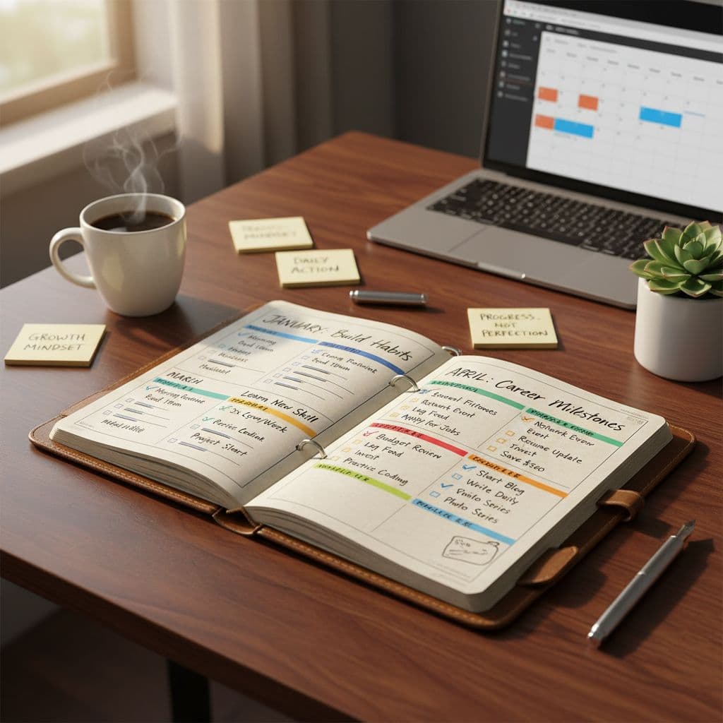 11. Minimal tools like a notebook, a basic calendar, and a few helpful books or planners are enough; overcomplication kills consistency.